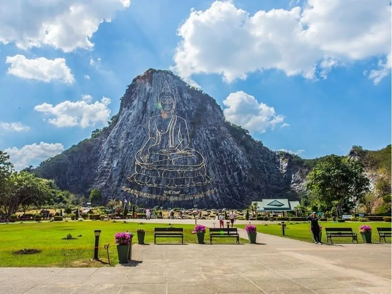 Núi Khao Chi Chan, cách Pattaya chỉ khoảng 15km, là một trong những điểm du lịch tâm linh nổi bật của khu vực. Đặc biệt, ngọn núi này sở hữu bức tượng Phật khổng lồ được khắc từ vàng ròng 24K, cao 130m và rộng hơn 70m. Đây là món quà mừng quốc vương Rama IX trị vì Thái Lan được 50 năm, được xây dựng vào năm 1996.